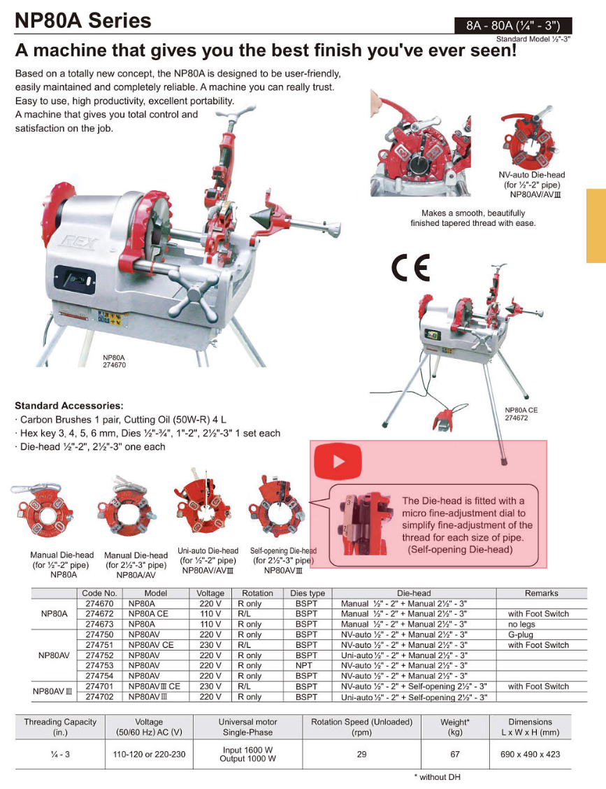 - Switch mechanisim protects Die-head from colliding with the hand wheel when threading short pipes.